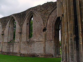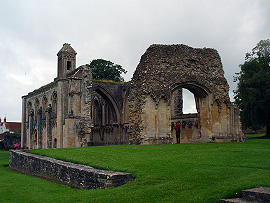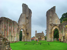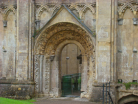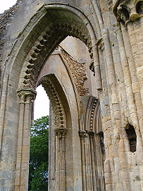 poměrně dobře zachovalý vchod ruiny opatství v Glastonbury Glastonbury, ruiny kostela z roku 1278
