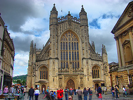 opatství v Glastonbury Bath, gotická katedrála z 15.století Bath, Pulteney bridge přes řeku Avon
