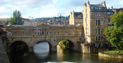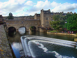 Opatství v Glastonbury s hrobem krále Artuše Bath, Pulteney bridge přes řeku Avonu