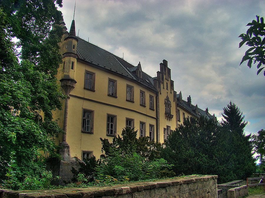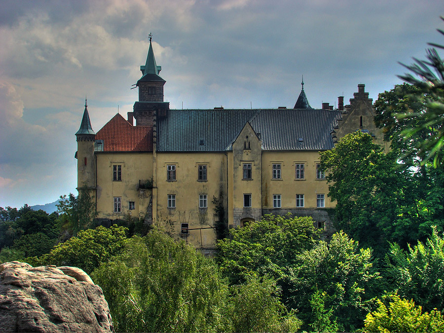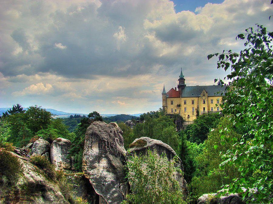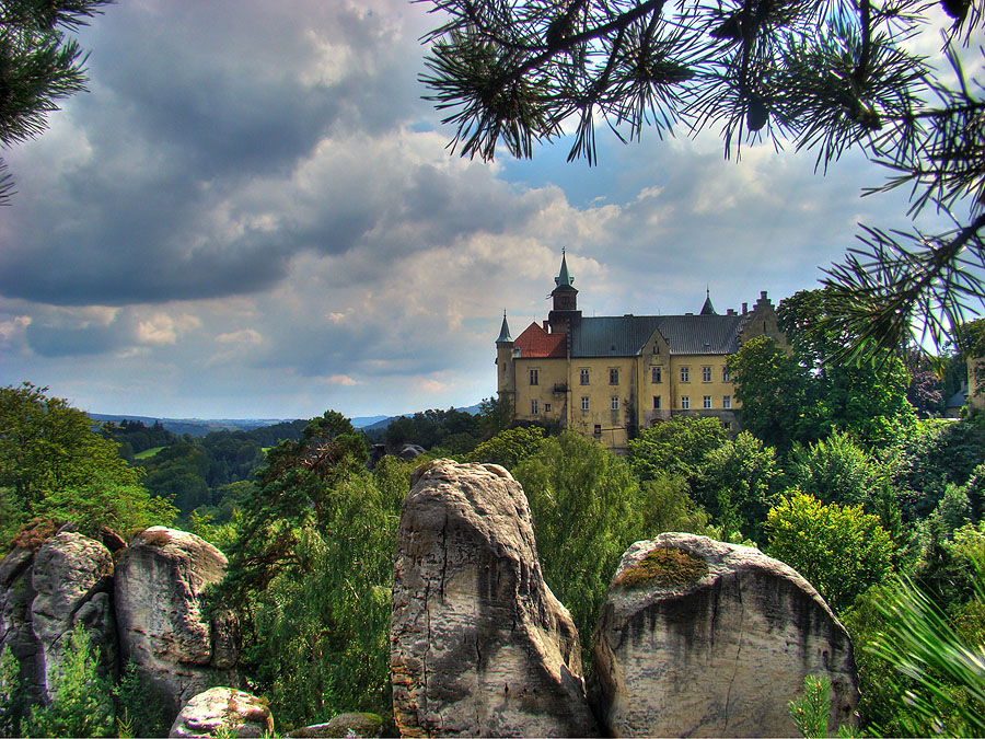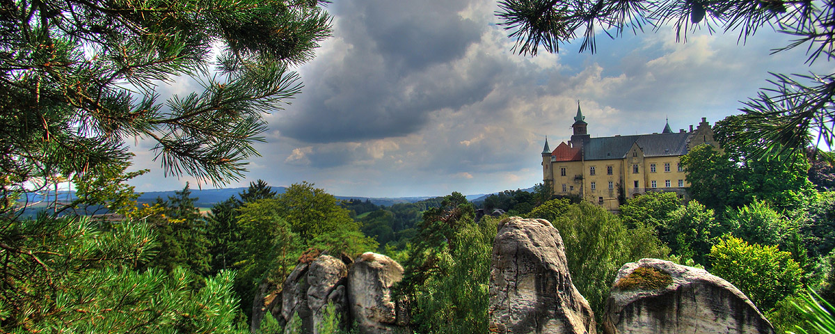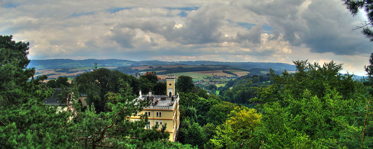 zámek hrubá Skála výhled z prachovny nad zámkem Hrubá Skála