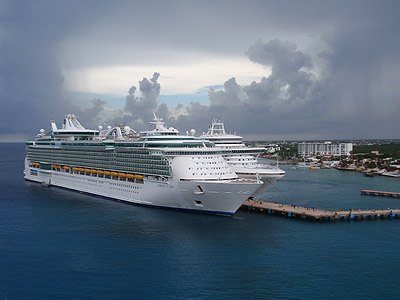 V přístavu asi 4km jižně od správního střediska San Miguel kotvíme u betonového mola po boku lodí společnosti Royal Caribbean.