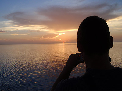 Ve čtvrt na osm jsme si nenechali ujít poslední západ Slunce. Naše loď se zrovna nacházela jižně od ostrova Key West, který jsme navštívili před týdnem.