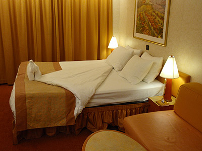 Po večeři máme vzorně rozestláno. Nechybí ani tradiční zvířátko upletené z ručníků - v tomto případě velbloud :-)